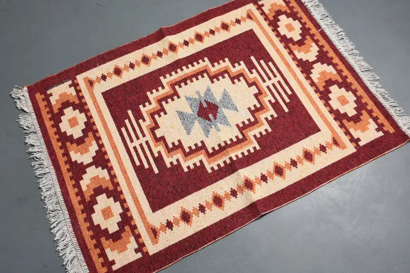 Türkischer Vintage-Teppich, 2,9 x 3,9 Fuß kleiner Teppich, roter Ikat-Teppich