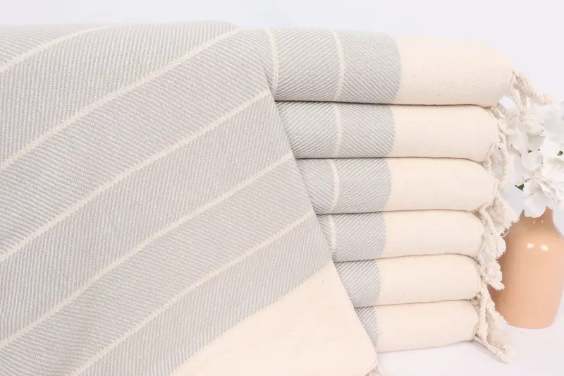 Monogramm-Handtuch, hellgrauer Baumwollstreifen, 16 x 36 Zoll