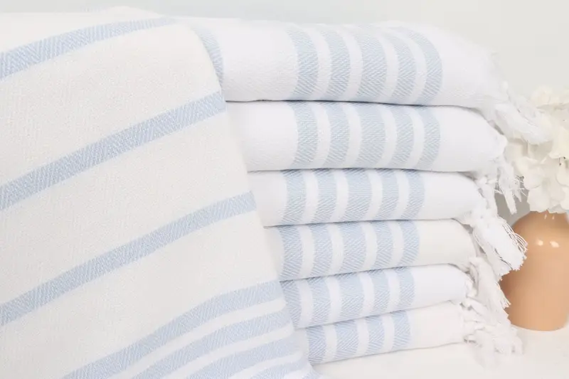 Babyblaues Baumwoll-Geschirrtuch mit Fischgrätenmuster, 24 x 36 Zoll
