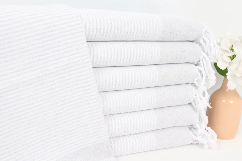 Gestreiftes Geschirrtuch aus türkischer Baumwolle, Hellgrau-Beige, 18 x 40 Zoll
