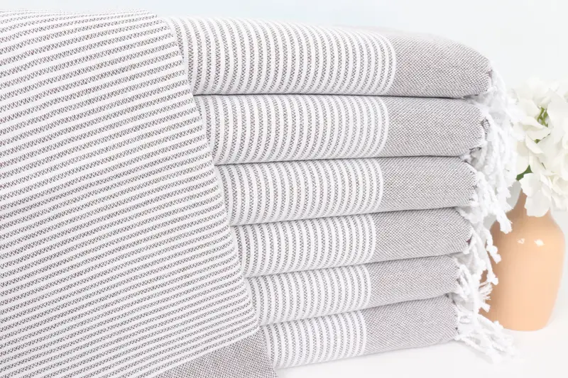 Gestreiftes Geschirrtuch aus brauner Baumwolle, personalisiertes Monogramm, 18 x 40 Zoll