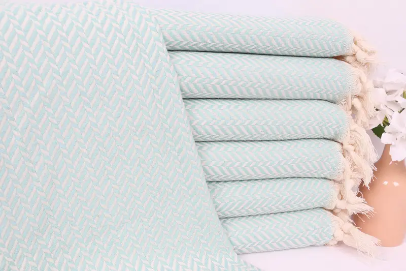 Mint Chevron Türkisches Geschirrtuch aus Bio-Baumwolle, Beige, 18x36 Zoll