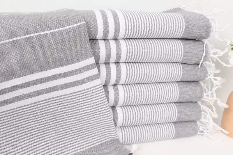 Monogramm-Küchentuch, dunkelgrau gestreift, 24 x 40 Zoll