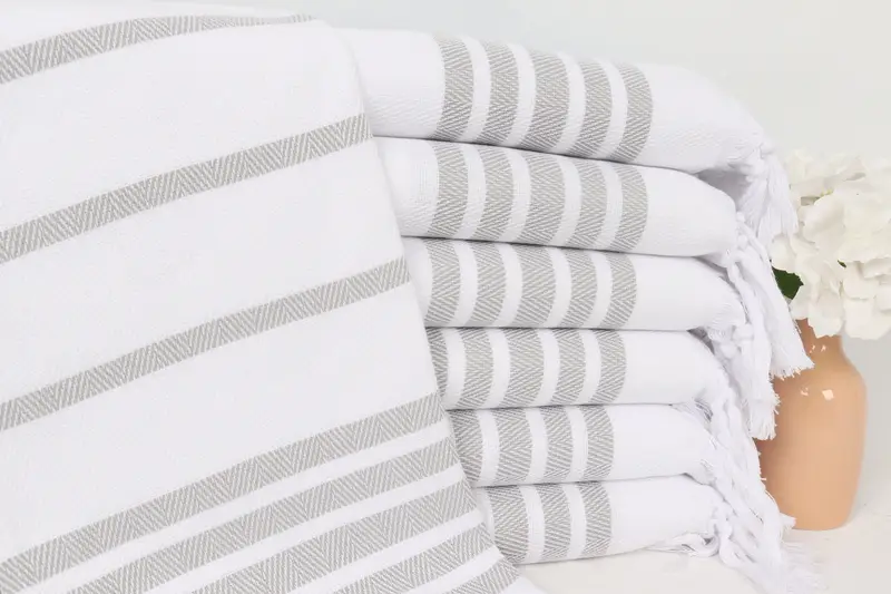Graues Baumwoll-Geschirrtuch, Monogramm-Küchentuch, Fischgrätenmuster, 24 x 36 Zoll