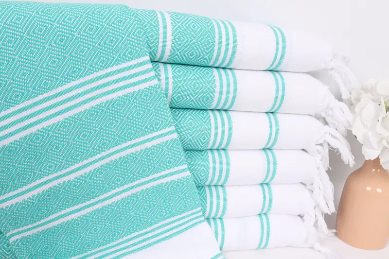 Personalisiertes Geschirrtuch aus türkischer Baumwolle Benetton Grün-Weiß, 18x40 Zoll