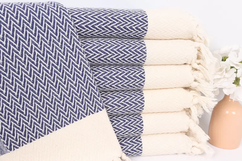 Marineblaues Baumwoll-Geschirrtuch im Zickzack-Design, 18 x 34 Zoll