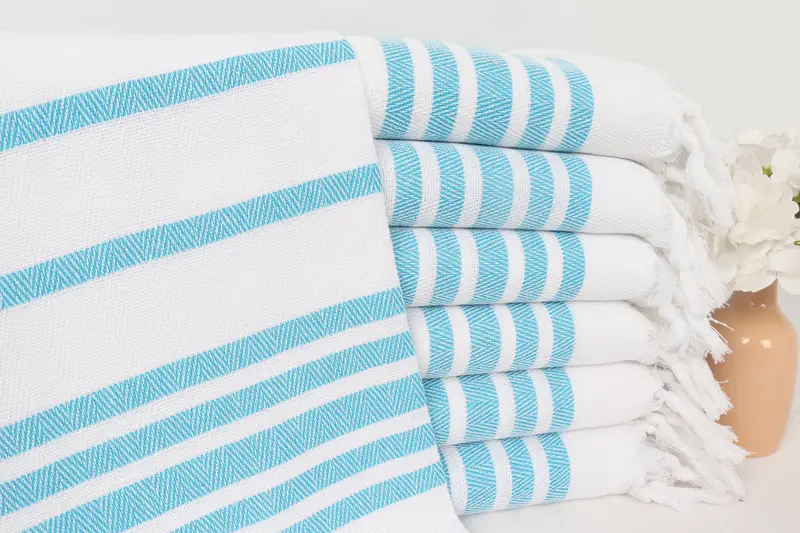 Türkisfarbenes Baumwoll-Geschirrtuch mit Fischgrätenmuster, 24 x 36 Zoll