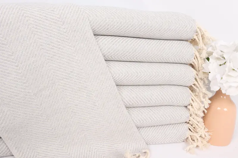 Personalisiertes Küchenhandtuch aus hellgrauer Baumwolle mit Fischgrätenmuster, 20 x 40 Zoll