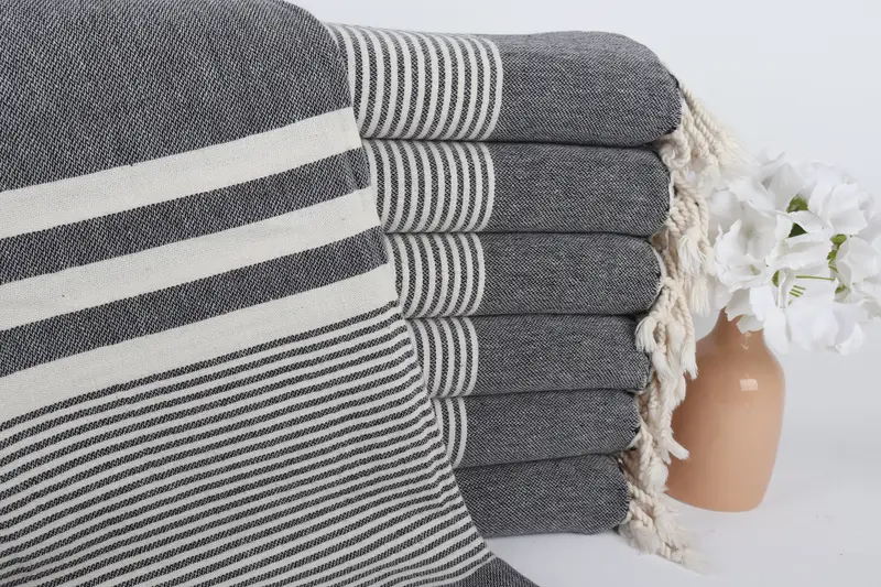 Die Handtücher bestehen aus türkischer Bio-Baumwolle und sind leicht, was eine bessere Tragbarkeit gewährleistet. Die Handtücher haben die Maße 40 x 71 Zoll bzw. 100 x 180 cm und wiegen 340 Gramm, wobei die zulässigen Handwebtoleranzen ±2,5 cm betragen.