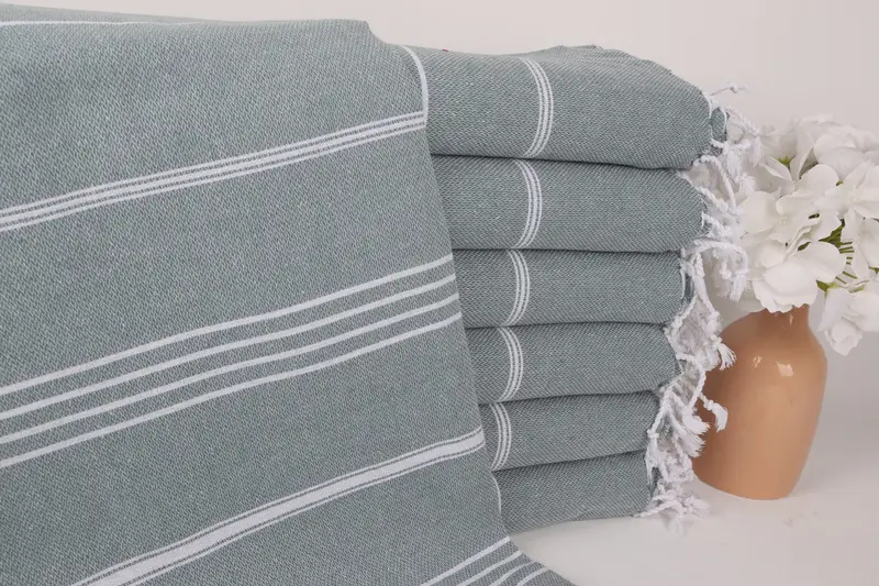 Die Handtücher zeichnen sich durch ihre Konstruktion aus 100 % türkischer Bio-Baumwolle aus, die optimale Saugfähigkeit und schnell trocknende Eigenschaften gewährleistet. Diese 280 Gramm schweren Handtücher werden sorgfältig mit einer Toleranz von ±2,5 cm gewebt, was zu einer Standardgröße von 40 x 71 Zoll oder 100 x 180 cm führt. Zu den Individualisierungsoptionen gehören Stickereien, die an ausgewählten Stellen personalisierte Monogramme oder Schriftzüge ermöglichen.