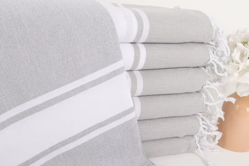 Türkische Bio-Baumwolle zeichnet sich durch ihre hervorragende Saugfähigkeit aus, wodurch die Handtücher äußerst effektiv für die Verwendung in Bad und Pool sind. Die Handtücher weisen ein Standardmaß von 100 x 180 cm (40 x 71 Zoll) mit einer Toleranz von 5 % auf, was eine gleichbleibende Produktqualität gewährleistet. Ihr Gewicht wird mit 290 Gramm angegeben und stellt eine leichte Option dar, die sich für Reisen und verschiedene Aktivitäten eignet.