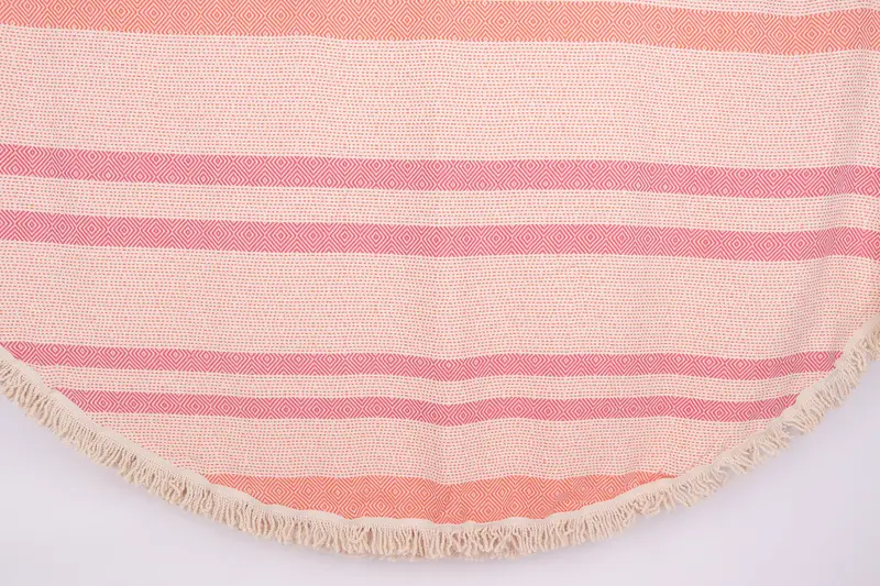 Diese Strandtücher zeichnen sich durch ihre Faserzusammensetzung aus 100 % türkischer Bio-Baumwolle aus, die eine hervorragende Saugfähigkeit und schnelle Trocknungseigenschaften gewährleistet. Jedes Handtuch misst 63 x 63 Zoll bzw. 160 x 160 Zentimeter und wiegt 600 Gramm. Das Ergebnis ist ein leichtes und dennoch langlebiges Produkt, das für mehrere Zwecke geeignet ist. Der Produktionsprozess ermöglicht eine Handwebtoleranz von +/- 1-2,5 cm.