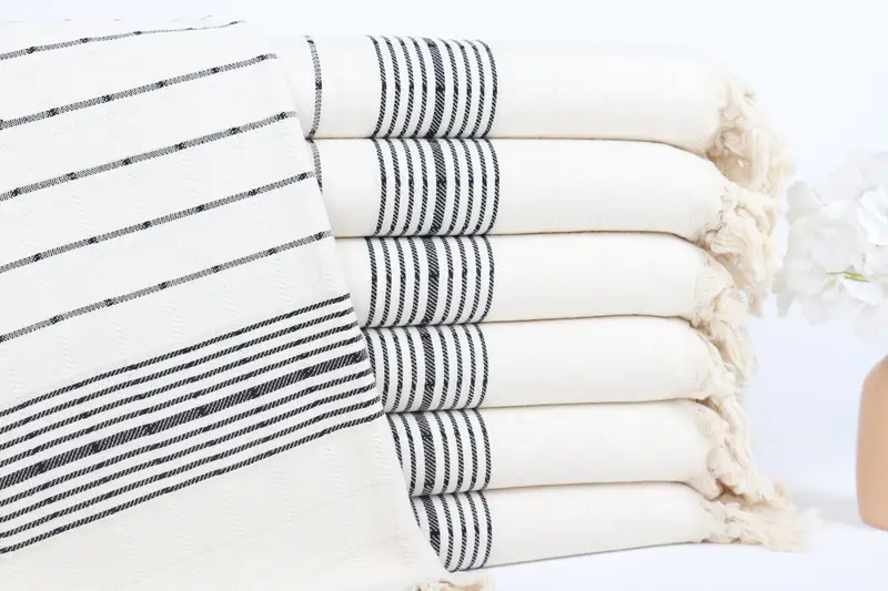 Das türkische Baumwollprodukt zeichnet sich durch 100 % türkische Bio-Baumwolle aus, die eine hohe Saugfähigkeit und schnelle Trocknung gewährleistet. Die Abmessungen betragen 40 x 71 Zoll oder 100 x 180 cm, bei einem Gewicht von 380 Gramm, was eine Flexibilität mit einer Toleranz von +/- 5 % ermöglicht. Das Produkt ist vorgeschrumpft und kann durch Stickerei oder Monogramm personalisiert werden.