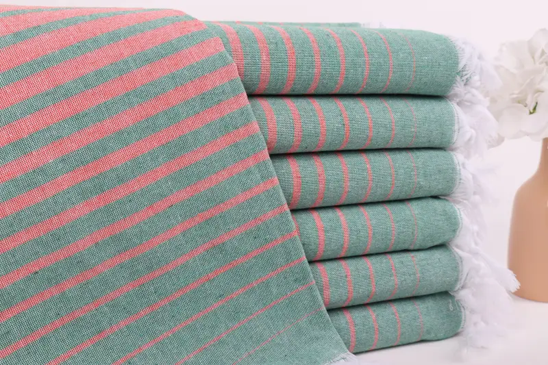 Die türkischen Badetücher bestehen aus 100 % türkischer Bio-Baumwolle und gewährleisten außergewöhnliche Saugfähigkeit und schnell trocknende Eigenschaften. Jedes Handtuch hat die Maße 40 x 69 Zoll oder 100 x 175 cm und ein Gewicht von 240 Gramm, was Flexibilität für verschiedene Verwendungszwecke ermöglicht, einschließlich Poolhandtücher, Badetücher und Reisehandtücher. Handwebtoleranzen können eine Abweichung von bis zu 5 % zulassen.