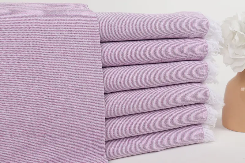 Die türkischen Handtücher zeichnen sich durch ihre leichte Beschaffenheit aus und sind aus 100 % türkischer Bio-Baumwolle gewebt, was eine außergewöhnliche Saugfähigkeit und schnelle Trocknungseigenschaften gewährleistet. Die Handtücher werden sorgfältig von Hand gewebt, was zu einer Abmessung von 100 x 180 cm (40 x 71 Zoll) mit einer Toleranz von ±5 % führt. Mit einem Gewicht von 200 Gramm sind diese Handtücher vorgeschrumpft und behalten so ihre Größe und Form.