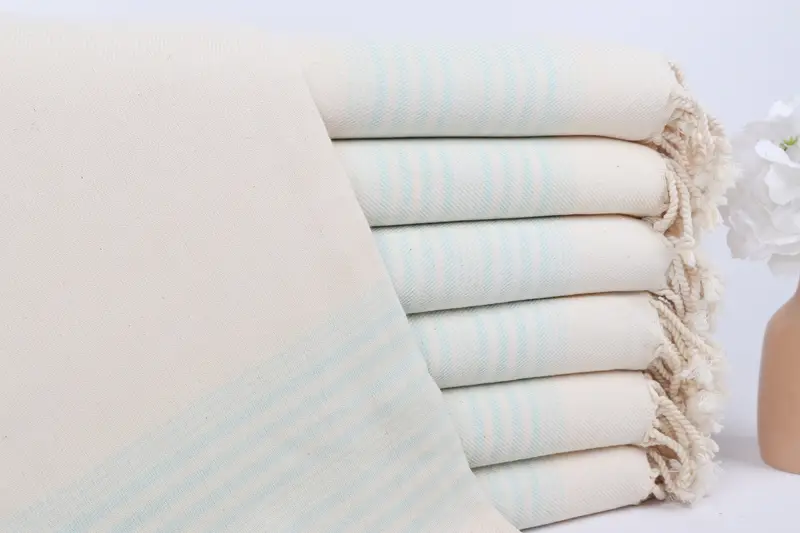 Diese Strandtücher zeichnen sich durch 100 % türkische Bio-Baumwolle aus und sorgen für eine hervorragende Saugfähigkeit und schnelles Trocknen. Jedes Handtuch misst 40 x 79 Zoll (100 x 200 cm) und wiegt 315 Gramm. Es wird sorgfältig von Hand gewebt, mit Toleranzen von ±5 %. Zu den Anpassungsoptionen gehören Personalisierung, Stickerei und Monogrammierung mit verschiedenen Schriftartoptionen und Platzierungsoptionen.