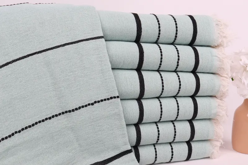 Gestreiftes Handtuch aus türkischer Baumwolle, Mint-Schwarz-Beige, 40 x 71 Zoll