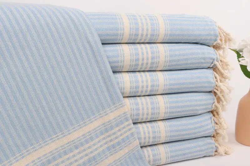 Türkisches Strandtuch, hellblaue Baumwollstreifen, 38 x 67 Zoll