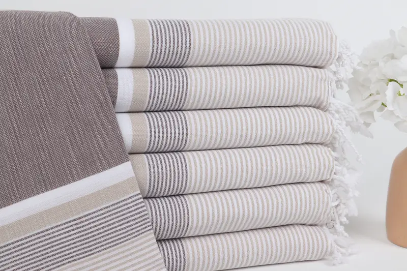 Monogramm-Strandtuch aus türkischer Baumwolle, beige-braun gestreift, 40 x 67 Zoll