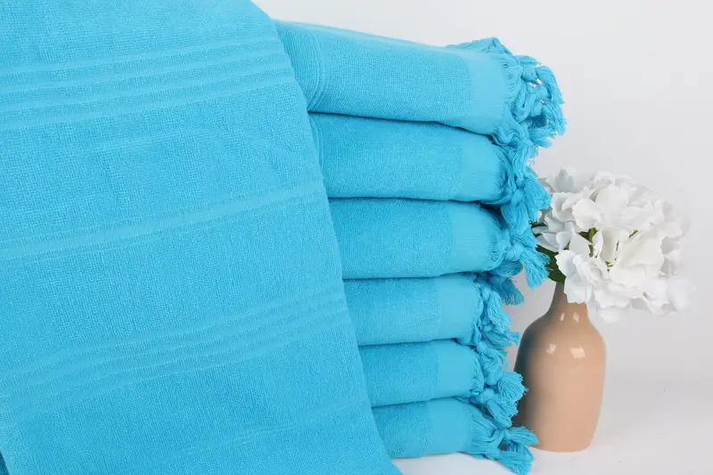 Baumwollhandtuch, personalisierbar, türkischer Strand, türkis gestreift, 91,4 x 180,9 cm