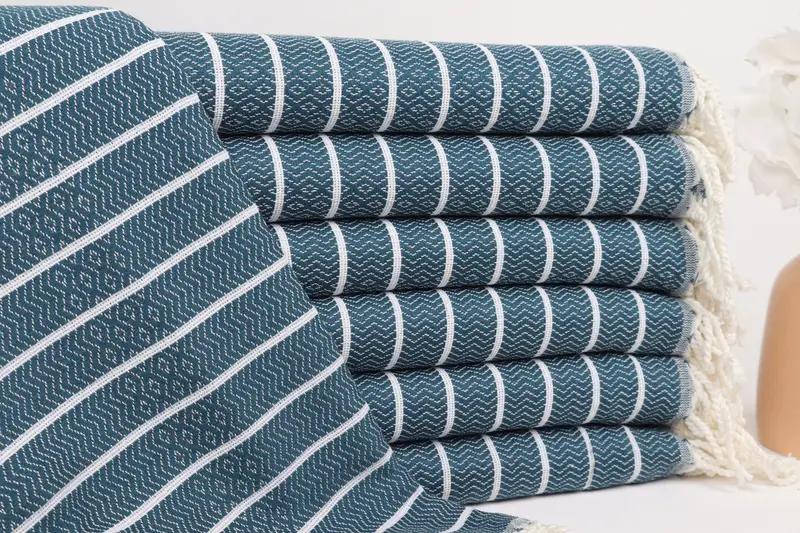 Das bereitgestellte Produkt zeichnet sich durch seine Materialzusammensetzung aus 100 % türkischer Bio-Baumwolle aus, die eine hervorragende Saugfähigkeit und schnelle Trocknungseigenschaften gewährleistet. Die Abmessungen des Handtuchs betragen 40 x 71 Zoll oder 100 x 180 cm, bei einem Gewicht von 300 Gramm, was eine vielseitige Verwendung als Pool-, Bade-, Fitness-, Picknick-, Reise-, Camping-, Spa-, Yoga- oder Sarong-Handtuch ermöglicht. Handwebtoleranzen erlauben leichte Abweichungen von bis zu ±5 %.