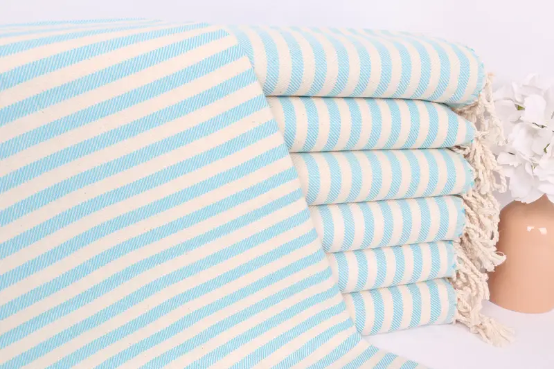 Gestreiftes Handtuch aus Baumwolle, Türkis-Beige, 24 x 40 Zoll