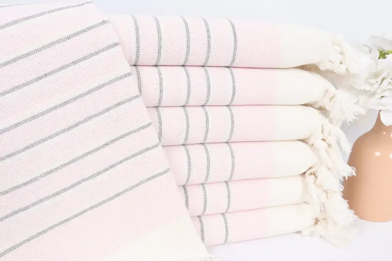 Badezimmerhandtuch, hellrosa Baumwoll-Frottee-Handtuch, gestreift, 18 x 36 Zoll