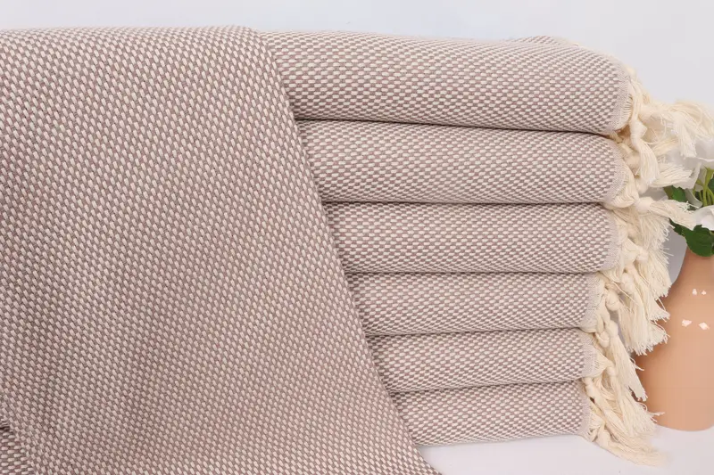 Gepunktetes Geschirrtuch mit Monogramm, Baumwolle, Braun/Beige, 18 x 40 Zoll