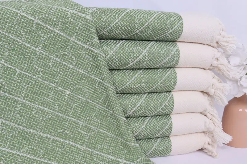 Personalisiertes geometrisches Geschirrtuch aus khakigrüner Baumwolle, 18 x 36 Zoll