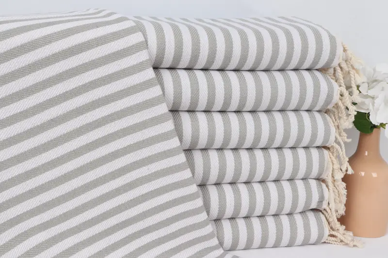 Gestreiftes Geschirrtuch aus türkischer Baumwolle, Hellgrau, 18 x 40 Zoll