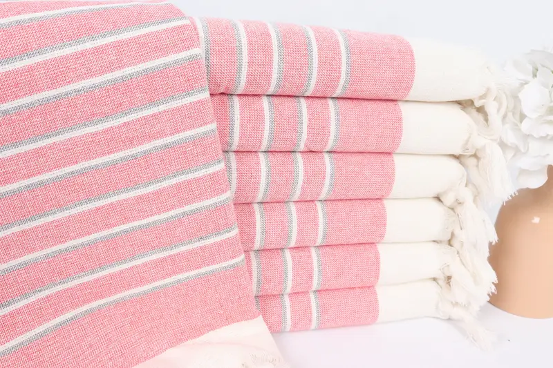 Türkisches Handtuch, rotes Baumwoll-Frottee, gestreift, 45,7 x 91,4 cm