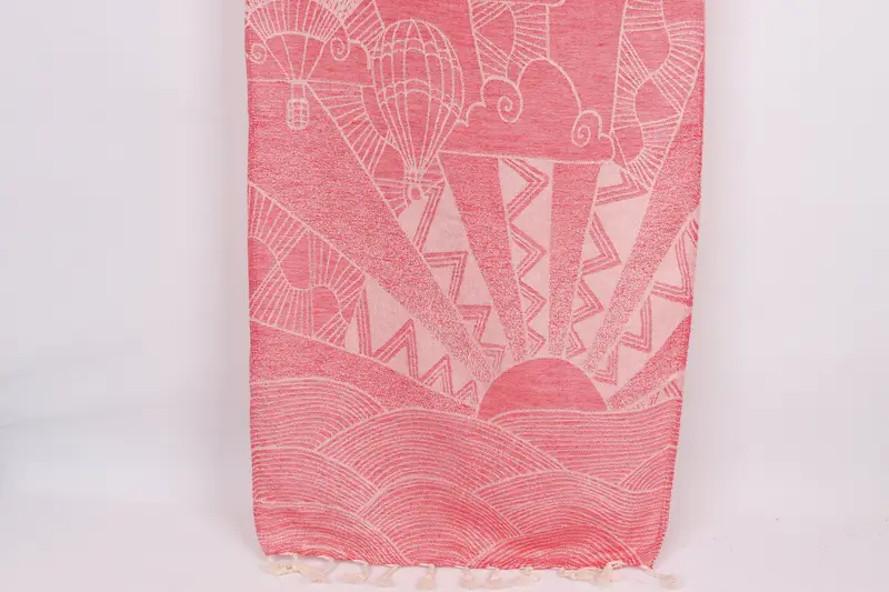 Türkisches Geschirrtuch aus roter Baumwolle mit Kappadokien-Motiv, 45,7 x 91,4 cm