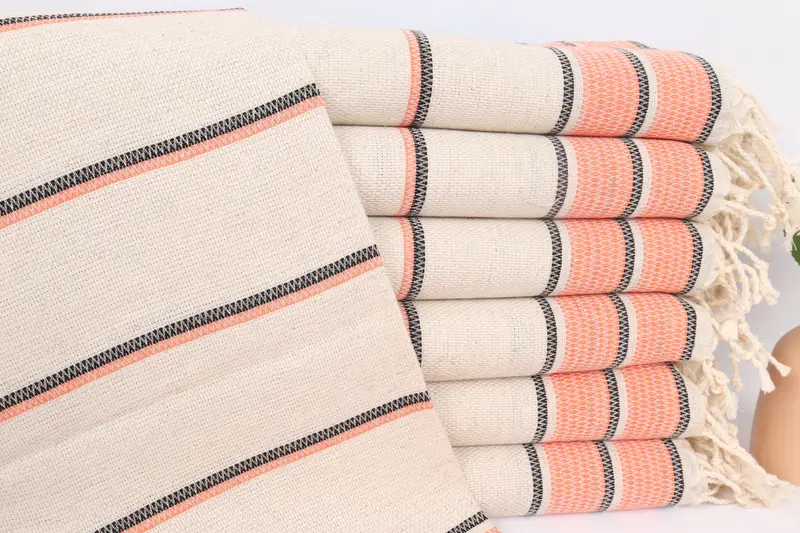 Gestreiftes Handtuch aus orangefarbenem Leinen, 20 x 40 Zoll