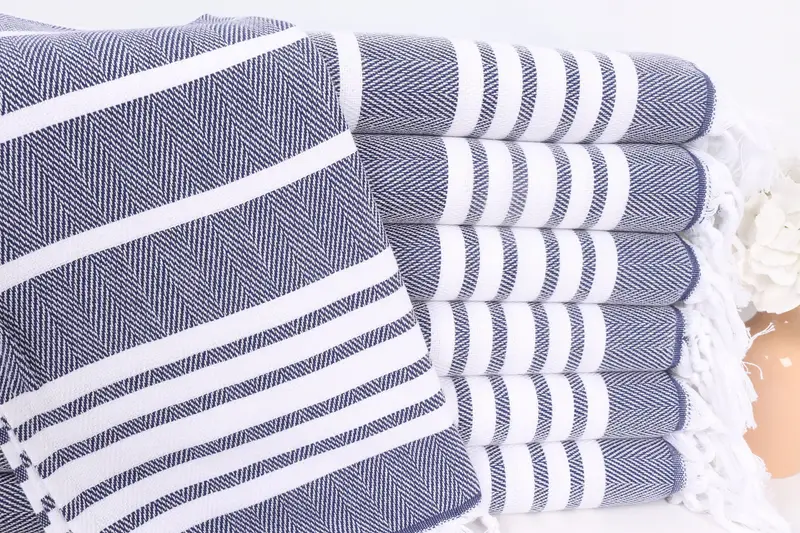 Personalisiertes Handtuch aus marineblauer Baumwolle mit Zick-Zack-Muster, 20 x 40 Zoll