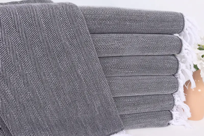 Fischgräten-Geschirrtuch aus schwarzer Baumwolle, personalisierbar, 45,7 x 91,4 cm
