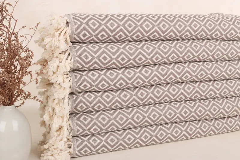 Maßgeschneidertes türkisches Strandtuch, Braun, Beige, Bio-Baumwolle, Raute, 40 x 71 Zoll