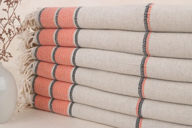 Türkisches Strandtuch aus Bio-Baumwolle, Monogramm, beige Streifen, 36 x 71 Zoll