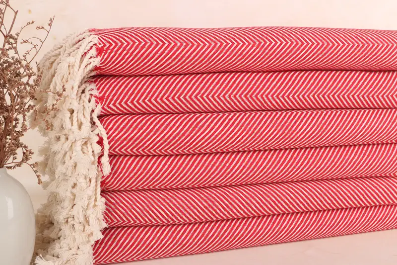 Herringbone Towel Badetuch aus Bio-Baumwolle, Rot und Beige, 40 x 71 Zoll