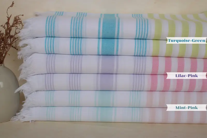 Badetuch aus Bio-Baumwolle, beige gestreift, 20 x 91 cm