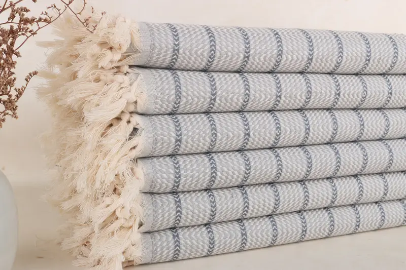 Maßgeschneidertes gestreiftes Badetuch, Hellgrau-Dunkelgrau, Bio-Baumwolle, 40 x 71 Zoll