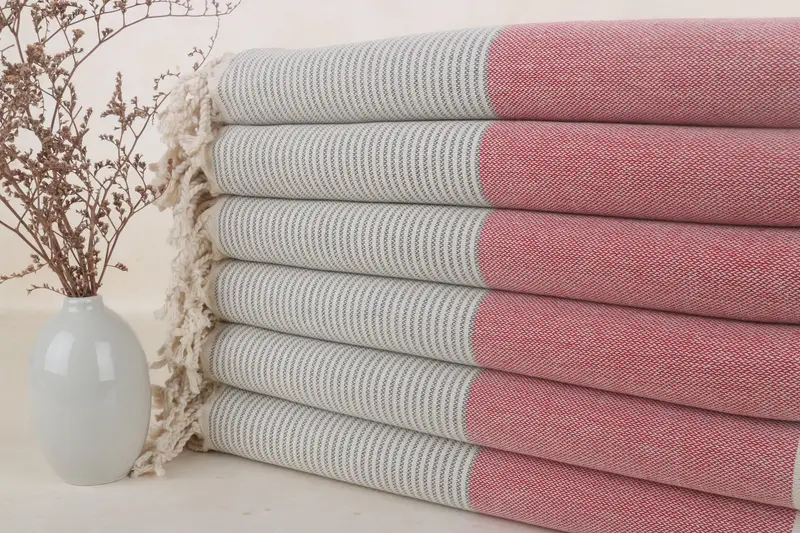 Dunkelgrau-rotes Baumwollhandtuch für das Bad, 40 x 71 Zoll, Beige Sekundärfarbe