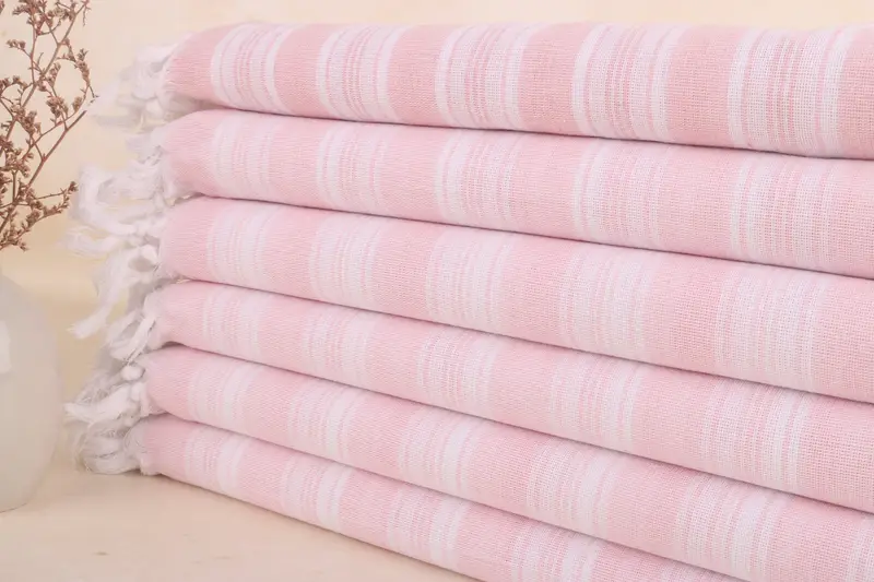 Gestreiftes Handtuch aus Bio-Baumwolle, Hellrosa, 40 x 71 Zoll