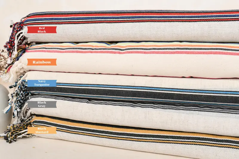 Gestreiftes türkisches Strandtuch aus Bio-Baumwolle, Beige, 38 x 71 Zoll