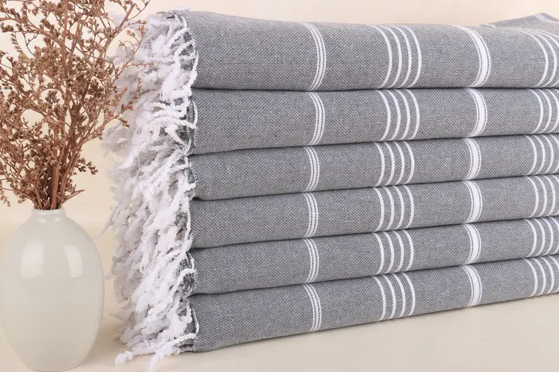 Personalisiertes türkisches Strandtuch, dunkelgrau gestreift, Beige, Bio-Baumwolle, 40 x 71 Zoll