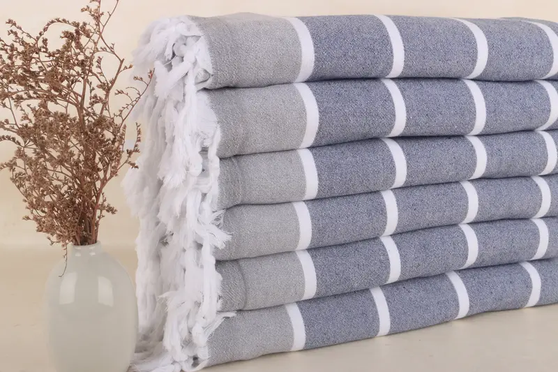 Türkisches Frottee-Badetuch, Marineblau gestreift, Beige, 40 x 67 Zoll
