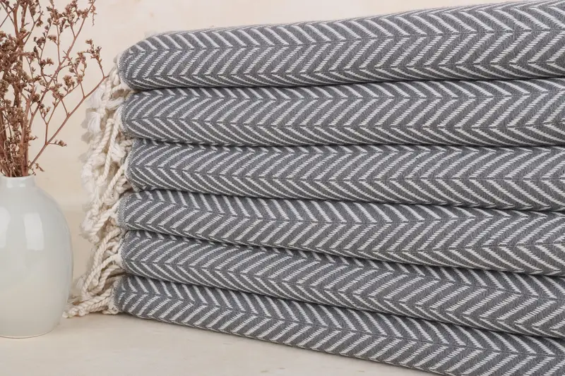 Personalisiertes Strandtuch aus türkischer Baumwolle, dunkelgraues Chevron, 40 x 71 Zoll