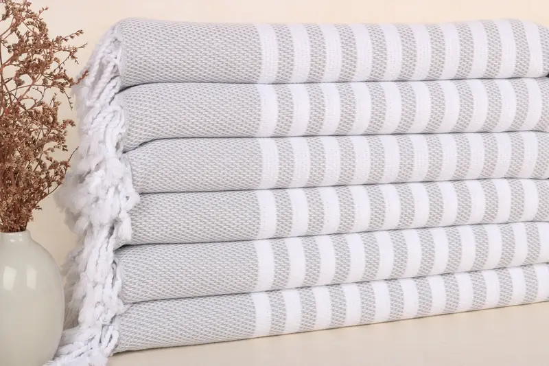 Handgefertigtes Geschirrtuch aus grauer Baumwolle mit beigen Akzenten, 24 x 44 Zoll