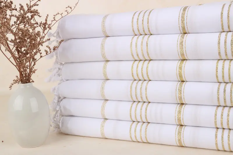 Türkisches Strandhandtuch, gelb-silbrig gestreift, Beige, Bio-Baumwolle, 40 x 71 Zoll