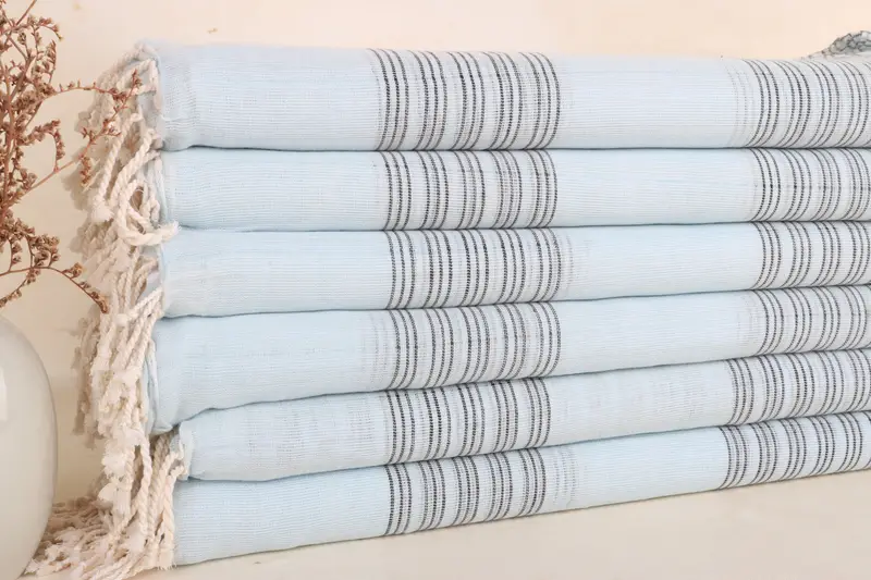 Gestreiftes Handtuch aus Bio-Baumwolle, Strandtuch, Babyblau-Schwarz, 40 x 71 Zoll