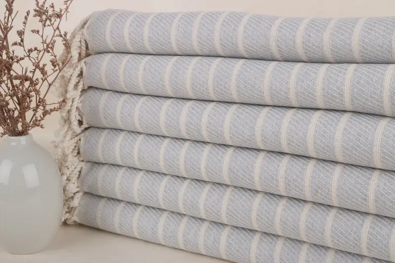 Gestreiftes Strandtuch aus hellgrauem Bambus, Freundgeschenk, 40 x 75 Zoll